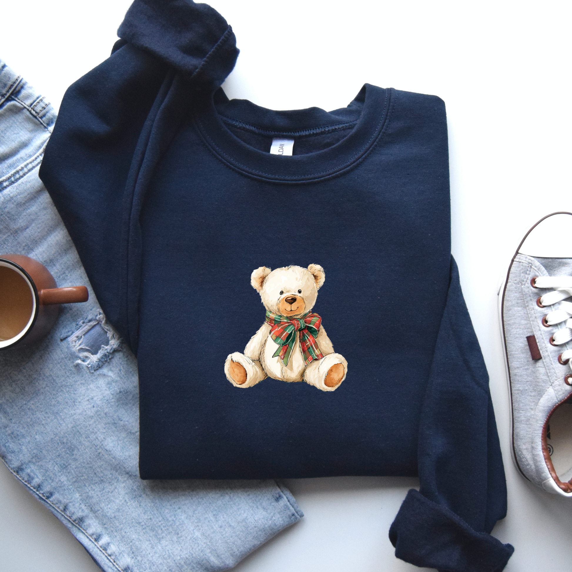Wrap yourself in nostalgic comfort with this cozy Holiday Teddy Sweatshirt. Featuring a charming vintage-style teddy bear adorned with a festive plaid bow, this sweatshirt captures the warmth and joy of the season. Perfect for cozy mornings, tree trimming, or festive outings, it’s soft, classic, and effortlessly sweet—just like your favorite holiday memories.