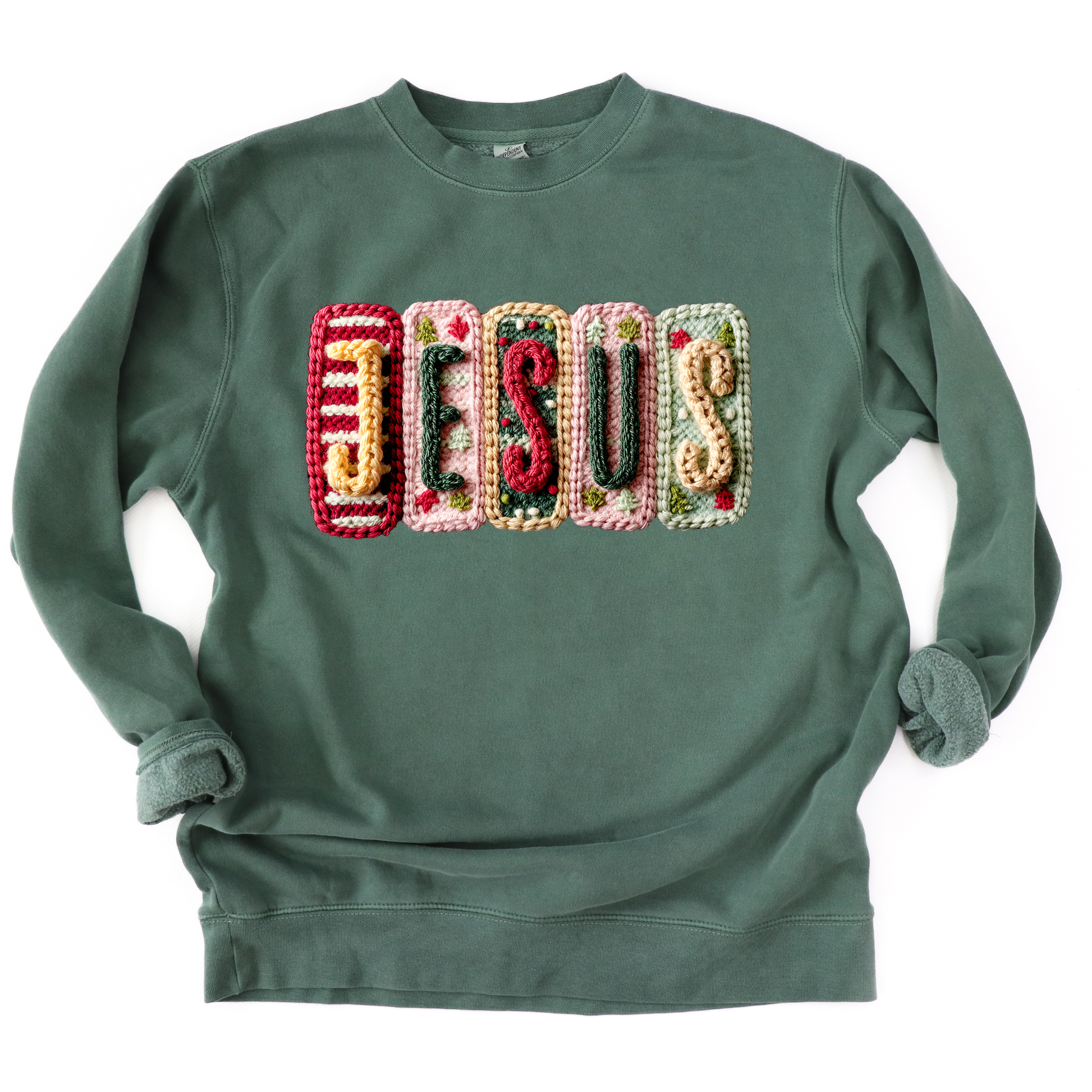 Jesus Faux Crochet Sweatshirt | Alpine Green
